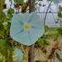 Fleurs en trompette blanche à bleu ciel rayée d'une étoile à 5 branche bleu foncé. Vous la retrouverez dans notre mélange d'Ipomées.