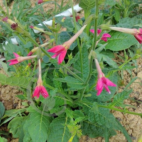 Grappes de fleurs en trompette s'ouvrent dès le matin, dans des coloris allant du blanc au rose. Hauteur 75 cm.