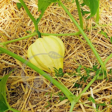 | Ffruits en forme de gland, profondément côtelé d’environ 20 cm de long, blanc-crème virant au jaune pâle à maturité. Chair dorée et ferme, peu sucré, idéale frite ou rôtie. Plante à port buissonnant.