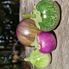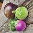 | Mélange de 3 variétés-population développées par Brad Gates : atomic fusion, atomic grape et atomic sunset. Les fruits sont ovoïdes, de 20 à 120 grammes, et de couleur zébrée verte, brun-rouge et indigo. La chair est verte marbrée de rouge, très sucrée. Les fruits se gardent longtemps après la récolte. Plante à port indéterminé (à tuteurer). |